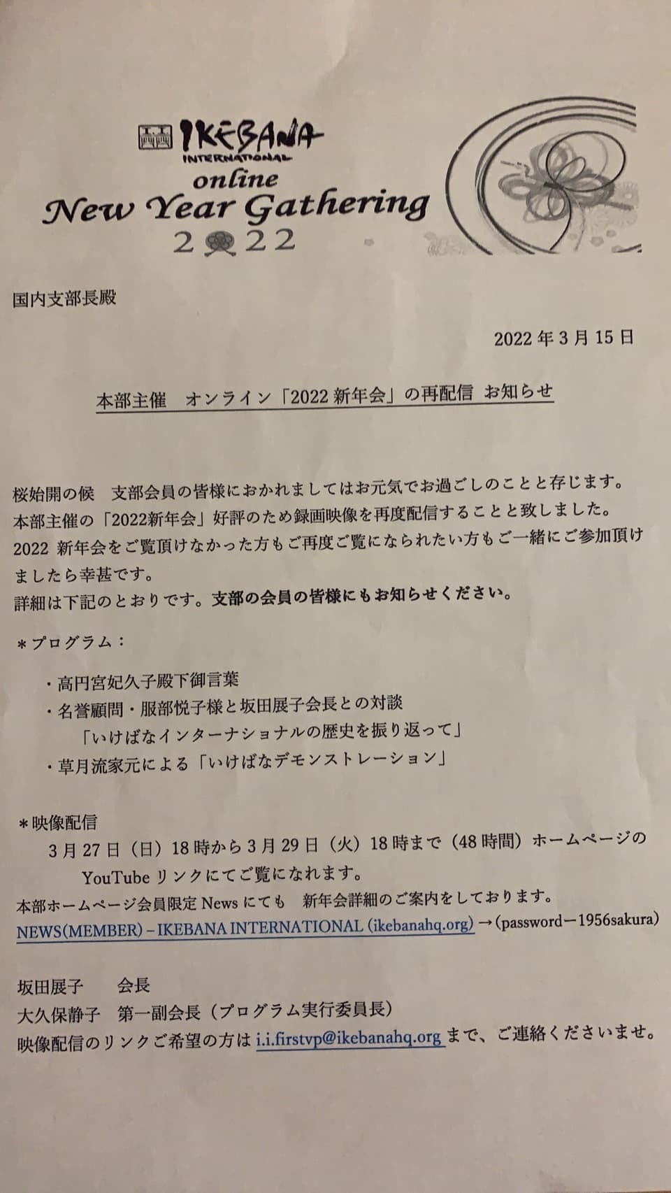 新年の集い2023再配信のお知らせ